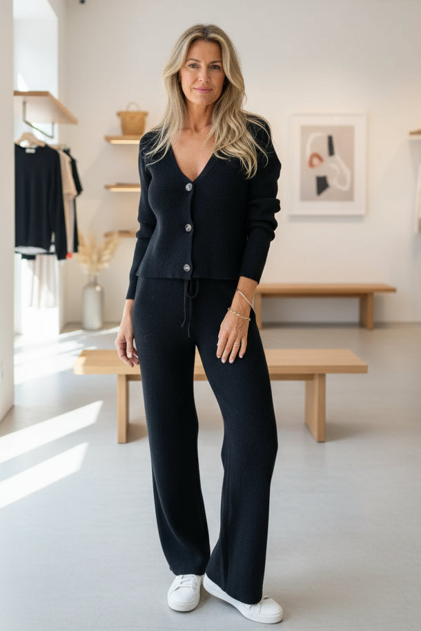 Vielseitig Kombinierbar: Beide Teile lassen sich auch separat tragen – der Cardigan z. B. zu Jeans oder Rock, die Hose mit einem schlichten Shirt.