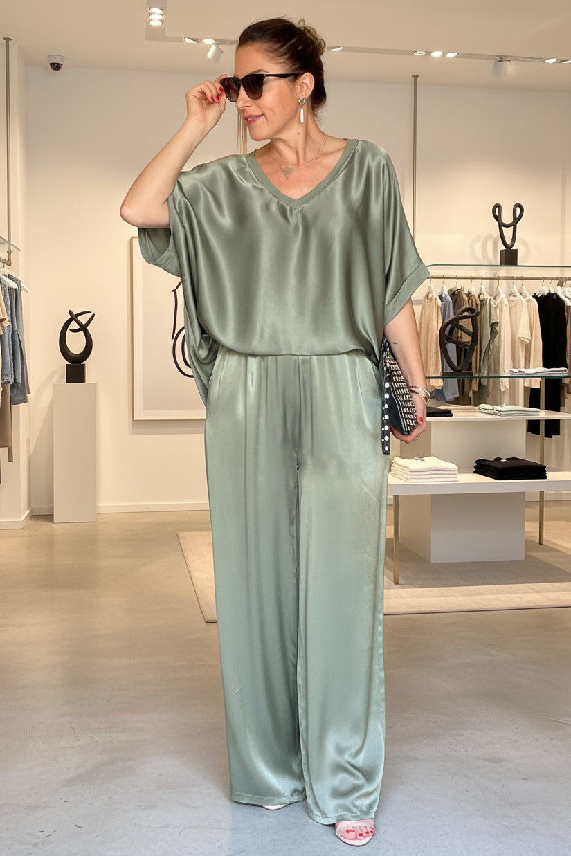 Das Lois Glanz-Zweiteiler-Set vereint Stil, Komfort und einen Hauch Glamour – perfekt zugeschnitten auf weibliche Kurven. Mit seiner lockeren Passform und dem dezenten Schimmer ist es ideal für besondere Anlässe oder stilvolle Alltagsmomente.