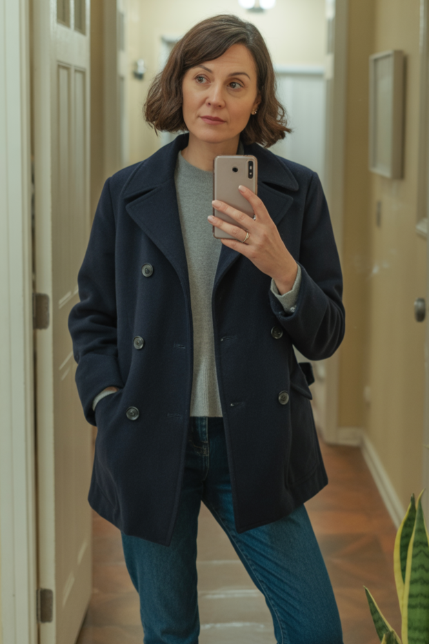 Schon beim ersten Anprobieren wusste ich: Das Sofia Etuikleid bleibt! Es macht eine schlanke Linie und wirkt edel.