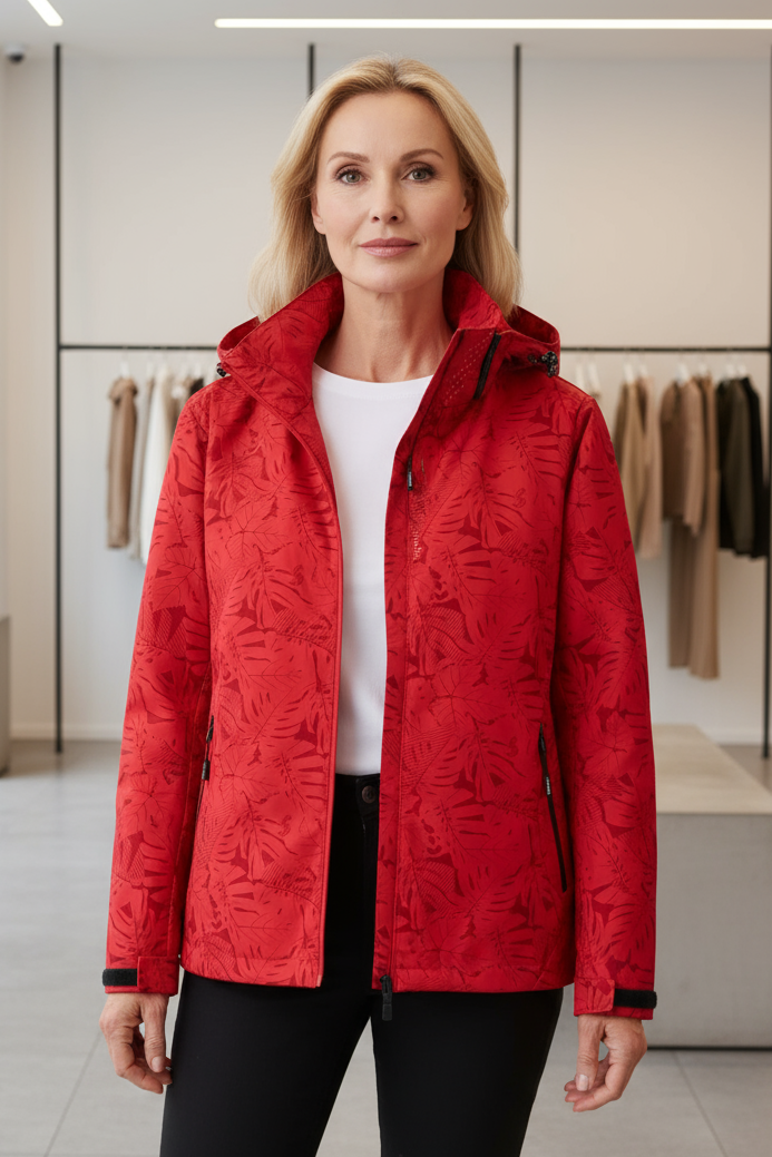 Modernes Natur-Design: Das dezente Blattmuster bringt frische Eleganz in deine Outdoor-Garderobe – praktisch und stilvoll zugleich.