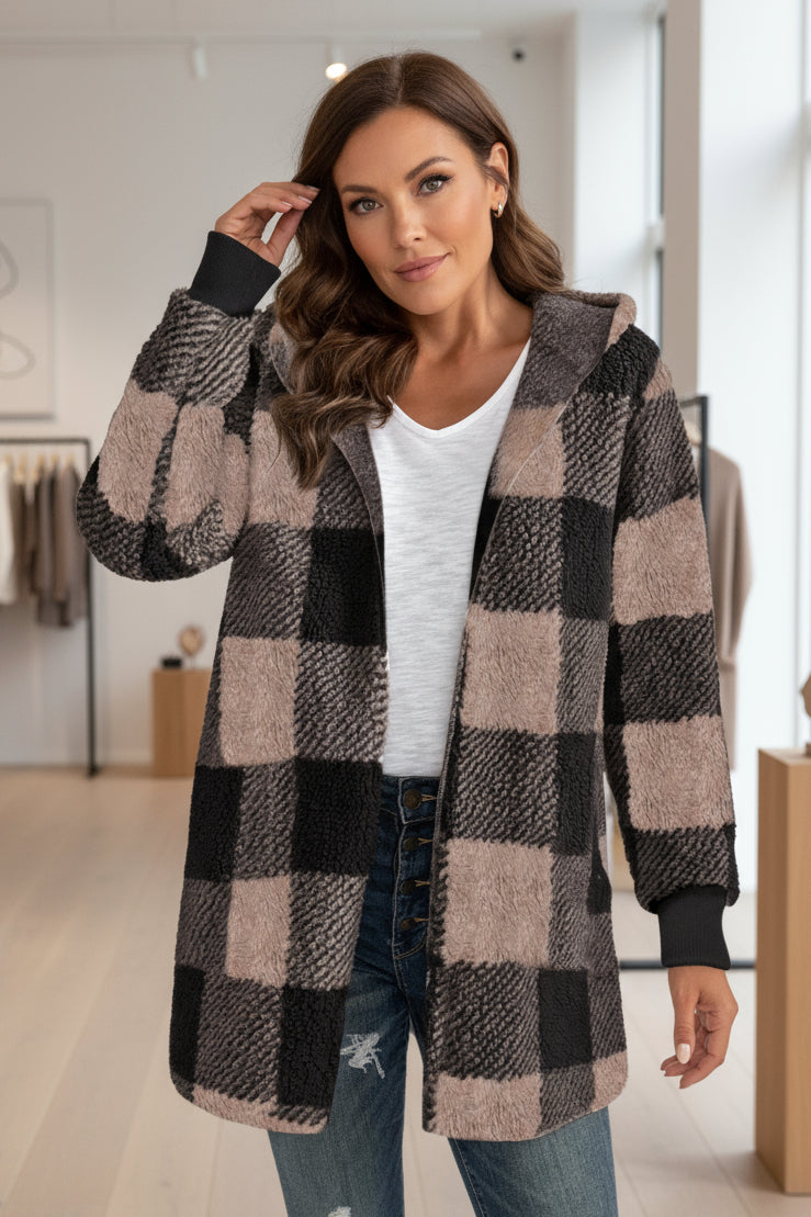 Diese flauschige Jacke bringt Farbe in graue Tage – perfekt für alle, die es gemütlich und stilvoll zugleich lieben.