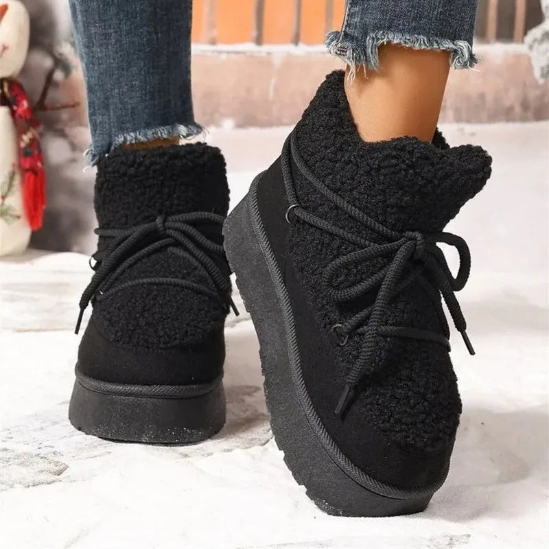 Stylischer Eyecatcher: Die Kombination aus Teddyfell und Schnürdetails macht diese Boots zu einem echten Highlight in jedem Winter-Outfit.