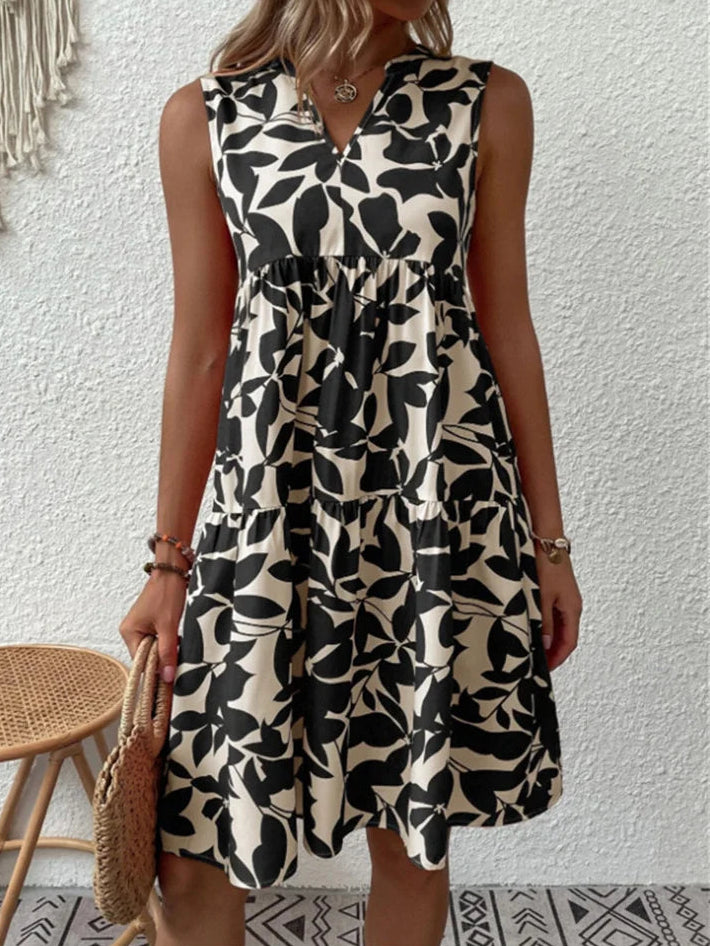 Dieses ärmellose Kleid mit lebendigem Blattprint ist die perfekte Wahl für warme Sommertage. Der lockere Schnitt und das verspielte Muster verleihen dir eine mühelose, feminine Ausstrahlung – ideal für Urlaub, Gartenparty oder Stadtbummel.